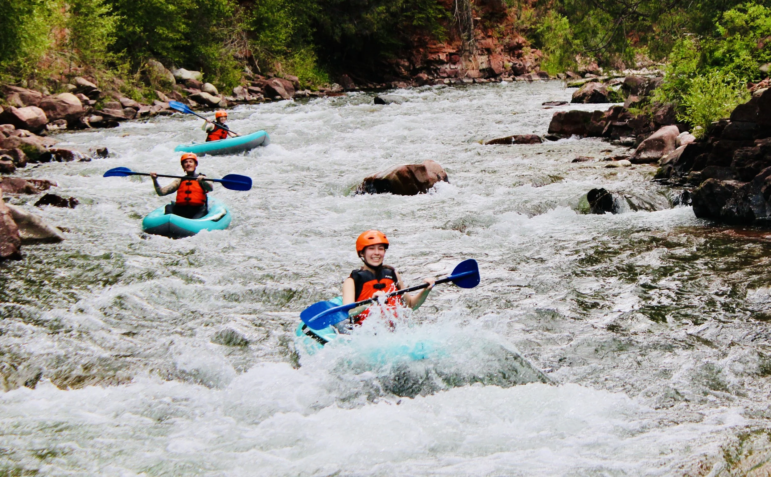 Paddle through the heart of Aspen’s canyon country on the Canyon Cruise — a splashy Class III whitewater rafting adventure on the Roaring Fork River. Enjoy exciting rapids, stunning mountain scenery, and just the right amount of thrill for most skill levels.